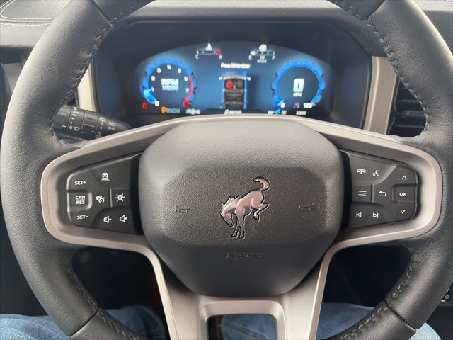 Factory MSRP: $58,150 $6,950 off MSRP! Green Metallic 2025 Ford Bronco Outer Banks 4WD 10-Speed Automatic 2.7L EcoBoost V6 18 Bright Machined Aluminum Wheels, 3.73 Axle Ratio, 360-Degree Camera, 4-Wheel Disc Brakes, 7 Speakers, ABS brakes, Adaptive Cruise Control, Air Conditioning, Alloy wheels, AM/FM radio: SiriusXM with 360L, AM/FM Stereo, Auto High-beam Headlights, Auto-dimming Rear-View mirror, Automatic temperature control, Brake assist, Carbonized Gray Molded-In-Color Hard Top, Compass, Connected Navigation, Delay-off headlights, Door Storage Bags, Driver door bin, Driver vanity mirror, Dual front impact airbags, Dual front side impact airbags, Electronic Stability Control, Emergency communication system: 911 Assist, Equipment Group 314A Lux Package, Evasive Steering Assist, Exterior Parking Camera Rear, Front anti-roll bar, Front Bucket Seats, Front Center Armrest, Front dual zone A/C, Front fog lights, Front License Plate Bracket, Front Parking Sensors, Front reading lights, Front wheel independent suspension, Fully automatic headlights, Hard Top Sound Deadening Headliner, Heated door mirrors, Heated front seats, Heated Leather-Trimmed/Vinyl Bucket Seats, Heated steering wheel, Illuminated entry, Information on Demand Panel, Integrated roll-over protection, Internet access capable: FordPass Connect, Leather Shift Knob, Low tire pressure warning, Navigation system: Connected Navigation, Occupant sensing airbag, Outside temperature display, Overhead airbag, Overhead console, Panic alarm, Passenger door bin, Passenger vanity mirror, Power door mirrors, Power driver seat, Power passenger seat, Power steering, Power windows, Radio data system, Radio: B&O Sound System by Bang & Olufsen, Rear seat center armrest, Rear-Window Defroster & Washer, Remote keyless entry, Security system, Sideview Mirrors, SiriusXM w/360L, Speed control, Split folding rear seat, Steering wheel mounted audio controls, SYNC 4, Tachometer, Telescoping steering wheel, Tilt steering wheel, Traction control, Trip computer, Universal Garage Door Opener, Upgraded Carpet Floor Mats, Variably intermittent wipers, Voltmeter.