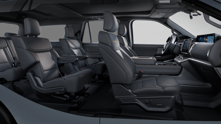 Factory MSRP: $84,940 Gray Metallic 2025 Ford Expedition Tremor 4WD 10-Speed Automatic 3.5L V6 4WD, 10 Speakers, 2nd Row Power-Folding Captain's Chairs, 3.73 Axle Ratio, 3rd row seats: split-bench, 4-Wheel Disc Brakes, ABS brakes, Adjustable pedals, Air Conditioning, Alloy wheels, AM/FM radio: SiriusXM with 360L, Apple CarPlay/Android Auto, Auto High-beam Headlights, Auto-dimming door mirrors, Auto-dimming Rear-View mirror, Automatic temperature control, Brake assist, Bumpers: body-color, Compass, Delay-off headlights, Driver door bin, Driver vanity mirror, Dual front impact airbags, Dual front side impact airbags, Electronic Stability Control, Emergency communication system: 911 Assist, Equipment Group 501A High Package, Exterior Parking Camera Rear, Four wheel independent suspension, Front anti-roll bar, Front Bucket Seats, Front Center Armrest, Front dual zone A/C, Front fog lights, Front reading lights, Fully automatic headlights, Garage door transmitter, Heated & Ventilated Leather Front Captain's Chairs, Heated door mirrors, Heated front seats, Heated steering wheel, Illuminated entry, Leather steering wheel, Low tire pressure warning, Memory seat, Navigation System, Occupant sensing airbag, Outside temperature display, Overhead airbag, Overhead console, Panic alarm, Passenger door bin, Passenger vanity mirror, Pedal memory, Power door mirrors, Power driver seat, Power moonroof: Vista Roof, Power passenger seat, Power steering, Power windows, Radio data system, Radio: B&O Sound System by Bang & Olufsen, Rear air conditioning, Rear anti-roll bar, Rear reading lights, Rear window defroster, Rear window wiper, Reclining 3rd row seat, Remote keyless entry, Security system, SiriusXM w/360L, Speed control, Speed-sensing steering, Speed-Sensitive Wipers, Split folding rear seat, Spoiler, Steering wheel memory, Steering wheel mounted audio controls, Tachometer, Telescoping steering wheel, Tilt steering wheel, Traction control, Trip computer, Turn signal indicator mirrors, Variably intermittent wipers, Ventilated front seats, Voltmeter, Wheels: 18 Dark Carbonized Gray Painted Aluminum, 4WD.