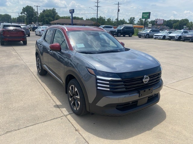 ** Alloy Wheels / Premium Wheels, ** Bluetooth®, Hands Free, ** Cruise Control, ** Keyless Entry, ** Premium Sound System / Premium Audio, ** Satellite Radio, ** Steering Wheel Controls, 17 Alloy Wheels, 4 Speakers, 4-Wheel Disc Brakes, ABS brakes, Air Conditioning, Alloy wheels, AM/FM radio: Sirius, Auto High-beam Headlights, Blind Spot Warning, Brake assist, Bumpers: body-color, Cloth Seat Trim, Driver door bin, Driver vanity mirror, Dual front impact airbags, Dual front side impact airbags, Electronic Stability Control, Four wheel independent suspension, Front anti-roll bar, Front Bucket Seats, Front Center Armrest, Front reading lights, Fully automatic headlights, Heated door mirrors, Illuminated entry, Knee airbag, Low tire pressure warning, Occupant sensing airbag, Outside temperature display, Overhead airbag, Panic alarm, Passenger door bin, Passenger vanity mirror, Power door mirrors, Power steering, Power windows, Radio data system, Radio: AM/FM Audio System, Rear anti-roll bar, Rear Parking Sensors, Rear reading lights, Rear side impact airbag, Rear window defroster, Rear window wiper, Remote keyless entry, Security system, Speed control, Speed-sensing steering, Split folding rear seat, Spoiler, Sport steering wheel, Steering wheel mounted audio controls, Tachometer, Telescoping steering wheel, Tilt steering wheel, Traction control, Trip computer, Variably intermittent wipers, Wireless Apple CarPlay/Wireless Android Auto. Gun Metallic/Scarlet Ember Tintcoat 2025 Nissan Kicks SV AWD CVT with Xtronic 2.0L DOHC