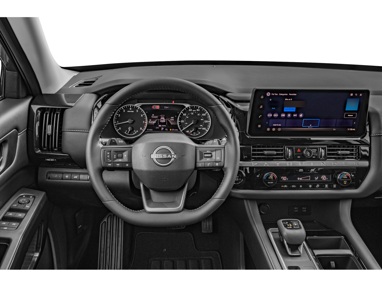 ** Alloy Wheels / Premium Wheels, ** Bluetooth®, Hands Free, ** Cruise Control, ** Keyless Entry, ** Premium Sound System / Premium Audio, ** Satellite Radio, ** Steering Wheel Controls, 4WD, 18 Painted Alloy Wheels, 3rd row seats: bench, 4-Wheel Disc Brakes, 6 Speakers, ABS brakes, Air Conditioning, Alloy wheels, AM/FM radio: SiriusXM w/360L, Auto High-beam Headlights, Automatic temperature control, Brake assist, Bumpers: body-color, Cloth Seating Surfaces, Delay-off headlights, Driver door bin, Driver vanity mirror, Dual front impact airbags, Dual front side impact airbags, Electronic Stability Control, Emergency communication system: NissanConnect Services, Four wheel independent suspension, Front anti-roll bar, Front Bucket Seats, Front Center Armrest, Front dual zone A/C, Front reading lights, Fully automatic headlights, Garage door transmitter: myQ Connected Garage, Heated door mirrors, Heated Front Bucket Seats, Heated front seats, Illuminated entry, Knee airbag, Low tire pressure warning, NissanConnect featuring Apple CarPlay and Android Auto, Occupant sensing airbag, Outside temperature display, Overhead airbag, Overhead console, Panic alarm, Passenger door bin, Passenger vanity mirror, Power door mirrors, Power driver seat, Power Liftgate, Power steering, Power windows, Radio data system, Radio: AM/FM Audio System with NissanConnect, Rear air conditioning, Rear anti-roll bar, Rear reading lights, Rear seat center armrest, Rear side impact airbag, Rear window defroster, Rear window wiper, Reclining 3rd row seat, Remote keyless entry, Security system, Speed control, Speed-sensing steering, Split folding rear seat, Spoiler, Steering wheel mounted audio controls, Tachometer, Telescoping steering wheel, Tilt steering wheel, Traction control, Trip computer, Variably intermittent wipers, 4WD. Boulder Gray/Super Black 2026 Nissan Pathfinder SV 4WD 9-Speed Automatic 3.5L V6 DOHC