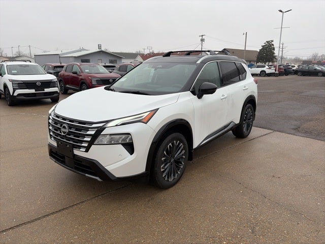 ** Alloy Wheels / Premium Wheels, ** Bluetooth®, Hands Free, ** Cruise Control, ** Keyless Entry, ** Premium Sound System / Premium Audio, ** Satellite Radio, ** Steering Wheel Controls, AWD, 10 Speakers, 4-Wheel Disc Brakes, ABS brakes, Air Conditioning, Alloy wheels, AM/FM radio: SiriusXM w/360L, Auto High-beam Headlights, Auto-dimming Rear-View mirror, Automatic temperature control, Bose Premium Audio System, Brake assist, Bumpers: body-color, Delay-off headlights, Driver door bin, Driver vanity mirror, Dual front impact airbags, Dual front side impact airbags, Electronic Stability Control, Emergency communication system: NissanConnect Services, Four wheel independent suspension, Front anti-roll bar, Front Bucket Seats, Front Center Armrest, Front dual zone A/C, Front reading lights, Fully automatic headlights, Garage door transmitter: myQ Connected Garage, Heads-Up Display, Heated door mirrors, Heated Front Bucket Seats, Heated front seats, Heated steering wheel, Illuminated entry, Knee airbag, Low tire pressure warning, Memory seat, Navigation system: Google Maps, Occupant sensing airbag, Outside temperature display, Overhead airbag, Overhead console, Panic alarm, Passenger door bin, Passenger vanity mirror, Power door mirrors, Power driver seat, Power Liftgate, Power moonroof, Power passenger seat, Power steering, Power windows, Quilted Semi-Aniline Leather-Appointed Seat Trim, Radio data system, Radio: AM/FM NissanConnect with Navigation, Rear anti-roll bar, Rear reading lights, Rear seat center armrest, Rear side impact airbag, Rear window defroster, Rear window wiper, Remote keyless entry, Security system, Speed control, Speed-sensing steering, Speed-Sensitive Wipers, Split folding rear seat, Spoiler, Steering wheel mounted audio controls, Tachometer, Telescoping steering wheel, Tilt steering wheel, Traction control, Trip computer, Turn signal indicator mirrors, Variably intermittent wipers, Wheels: 19 Unique Dark Painted Aluminum Alloy, Wireless Apple CarPlay/Wireless Android Auto, AWD. Everest White Pearl/Super Black 2026 Nissan Rogue Platinum AWD CVT with Xtronic 1.5L DOHC