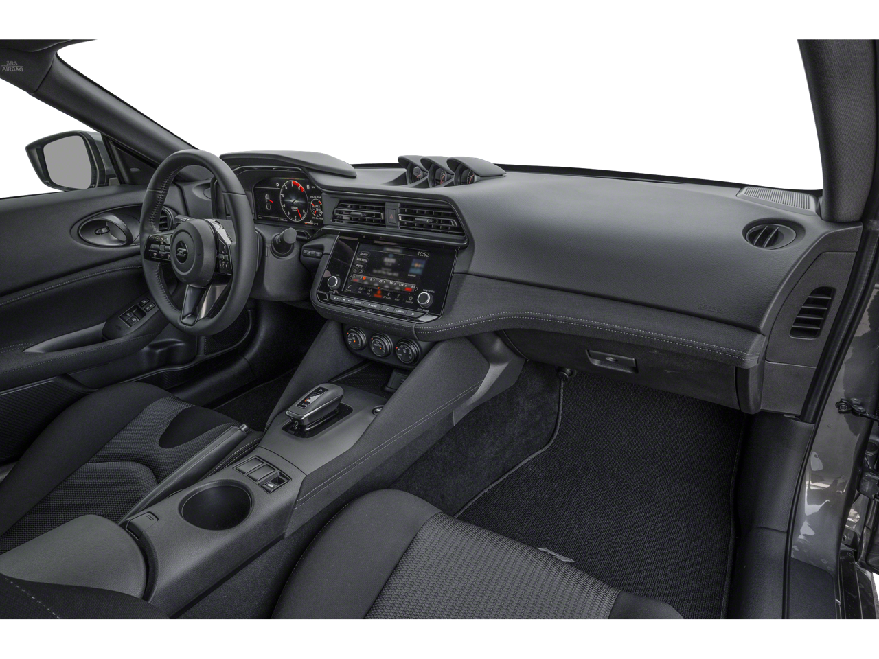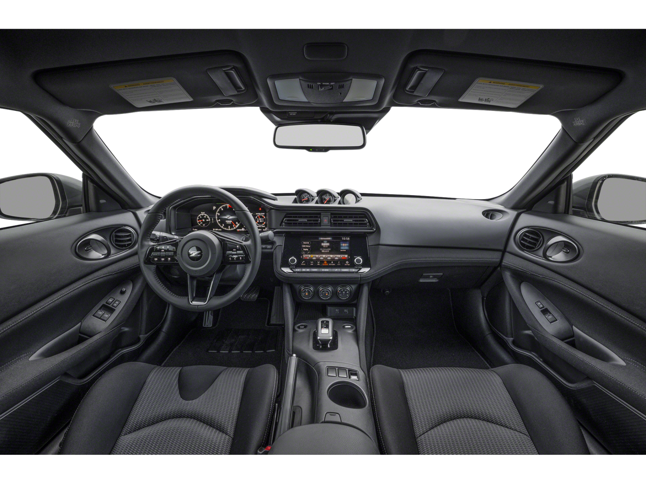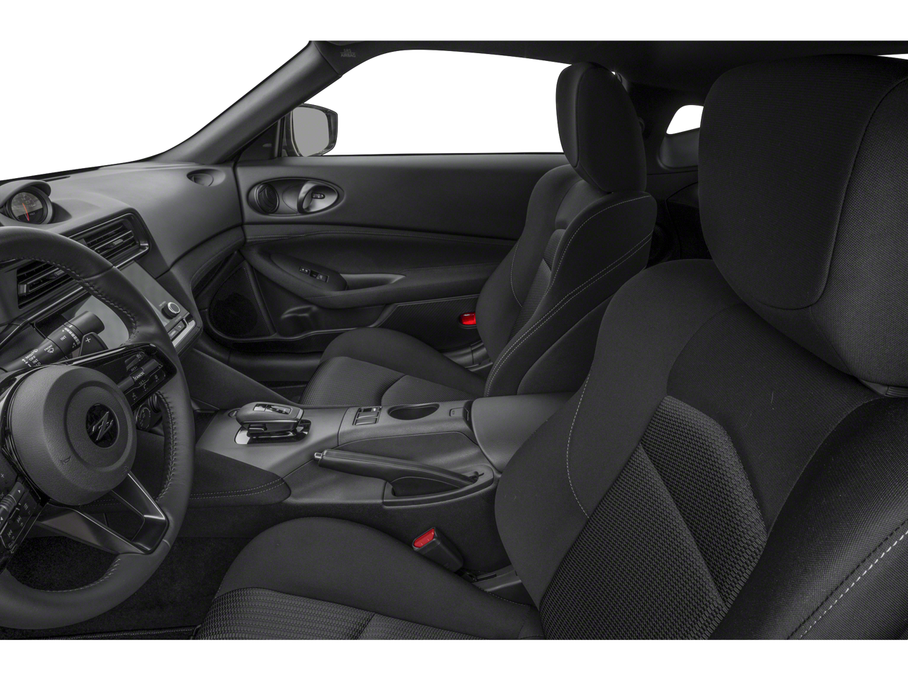 ** Alloy Wheels / Premium Wheels, ** Bluetooth®, Hands Free, ** Cruise Control, ** Keyless Entry, ** Premium Sound System / Premium Audio, ** Satellite Radio, ** Steering Wheel Controls, 4-Wheel Disc Brakes, 6 Speakers, ABS brakes, Air Conditioning, Alloy wheels, AM/FM radio: SiriusXM, Anti-whiplash front head restraints, Apple CarPlay/Android Auto, Auto High-beam Headlights, Auto-dimming Rear-View mirror, Automatic temperature control, Blind Spot Warning, Brake assist, Bumpers: body-color, Delay-off headlights, Driver door bin, Driver vanity mirror, Dual front impact airbags, Dual front side impact airbags, Electronic Stability Control, Four wheel independent suspension, Front anti-roll bar, Front Bucket Seats, Front Center Armrest, Front reading lights, Fully automatic headlights, Leather Shift Knob, Leather steering wheel, Low tire pressure warning, Occupant sensing airbag, Outside temperature display, Overhead airbag, Panic alarm, Passenger door bin, Passenger vanity mirror, Power door mirrors, Power steering, Power windows, Radio data system, Radio: Nissan Audio w/6 Speakers, Rear anti-roll bar, Rear window defroster, Remote keyless entry, Security system, Speed control, Speed-sensing steering, Steering wheel mounted audio controls, Tachometer, Telescoping steering wheel, Tilt steering wheel, Traction control, Trip computer, Turn signal indicator mirrors, Variably intermittent wipers, Voltmeter, Wheels: 18 x 9 Styled Alloy, Woven Cloth Seat Trim. Pearl White Tricoat/Super Black 2026 Nissan Z Sport RWD 9-Speed Automatic 3.0L V6