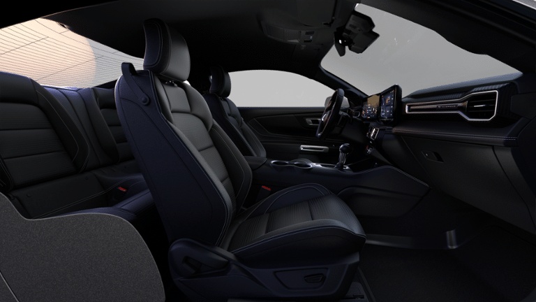 Equipment Group 401A High Package (Aluminum Foot Pedals, AM/FM Stereo, Driver Seat Memory with 3 Settings, Magnesium Framed Panoramic Curved Display, SYNC 4, and Wheels: 19 x 8.5 Shadow Silver-Painted Aluminum), Ford Connectivity Package (one-Time Purchase - 7 Years), 1st Row Carpeted Black Floor Mats, 4-Wheel Disc Brakes, ABS brakes, Active Valve Performance Exhaust, Air Conditioning, Alloy wheels, Auto High-beam Headlights, Automatic temperature control, B&O Sound System by Bang & Olufsen with 12 Speakers, Black Painted Wedge Decklid Spoiler, Brake assist, Bumpers: body-color, Compass, Delay-off headlights, Driver door bin, Driver vanity mirror, Dual front impact airbags, Dual front side impact airbags, Electronic Stability Control, Emergency communication system: 911 Assist, Exterior Parking Camera Rear, Four wheel independent suspension, Front anti-roll bar, Front Bucket Seats, Front Center Armrest, Front dual zone A/C, Front reading lights, Fully automatic headlights, Illuminated entry, Knee airbag, Leather Shift Knob, Leather steering wheel, Low tire pressure warning, Occupant sensing airbag, Outside temperature display, Over-the-Top Racing Stripe, Overhead airbag, Overhead console, Panic alarm, Passenger door bin, Passenger vanity mirror, Power door mirrors, Power steering, Power windows, Premium Floor Liners Front and Rear (with Carpet Mats), Radio data system, Rain sensing wipers, Rear anti-roll bar, Rear Parking Sensors, Rear window defroster, Remote keyless entry, Speed control, Speed-sensing steering, Speed-Sensitive Wipers, Split folding rear seat, Sport steering wheel, Steering wheel mounted audio controls, Tachometer, Telescoping steering wheel, Tilt steering wheel, Traction control, Trip computer, Variably intermittent wipers, Voltmeter, and Wedge Decklid Spoiler. Price includes: $750 - 2026 College Student Recognition Exclusive Cash Reward Pgm. Exp. 01/04/2027 $1000 Bonus Cash not available with sub vented rates.