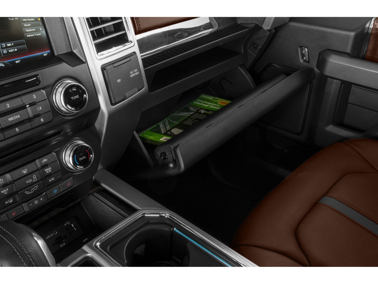 4WD, 10 Speakers, 20 Polished Aluminum Wheels, 4-Wheel Disc Brakes, ABS brakes, Active Park Assist, Adaptive Cruise Control & Collision Warning, Adjustable pedals, Air Conditioning, All-Weather Rubber Floor Mats, Alloy wheels, AM/FM radio: SiriusXM, Auto High-beam Headlights, Auto tilt-away steering wheel, Auto-dimming door mirrors, Auto-dimming Rear-View mirror, Automatic temperature control, Auxiliary Transmission Oil Cooler, Black Unique Multi-Contour Leather Bucket Seats, Brake assist, Bumpers: chrome, CD player, Class IV Trailer Hitch Receiver, Compass, Delay-off headlights, Driver door bin, Driver vanity mirror, Dual front impact airbags, Dual front side impact airbags, Electronic Stability Control, Equipment Group 701A Luxury, Extended Range 36 Gallon Fuel Tank, Exterior Parking Camera Rear, Front anti-roll bar, Front Bucket Seats, Front Center Armrest, Front dual zone A/C, Front fog lights, Front License Plate Bracket, Front reading lights, Front wheel independent suspension, Fully automatic headlights, Garage door transmitter, Genuine wood door panel insert, Heated door mirrors, Heated front seats, Heated rear seats, Heated steering wheel, Illuminated entry, Integrated Trailer Brake Controller, Lane-Keeping System, Low tire pressure warning, Max Trailer Tow Package, Memory seat, Navigation System, Occupant sensing airbag, Outside temperature display, Overhead airbag, Overhead console, Panic alarm, Passenger door bin, Passenger vanity mirror, Pedal memory, Power door mirrors, Power driver seat, Power passenger seat, Power steering, Power windows, Premium audio system: Sony, Radio data system, Radio: Sony Single CD w/HD & SiriusXM Satellite, Rain sensing wipers, Rear Parking Sensors, Rear reading lights, Rear seat center armrest, Rear step bumper, Rear window defroster, Remote keyless entry, Security system, Speed control, Speed-sensing steering, Split folding rear seat, Steering wheel memory, Steering wheel mounted audio controls, SYNC with MyFord Touch, Tachometer, Tailgate Step w/Tailgate Lift Assist, Technology Package, Telescoping steering wheel, Tilt steering wheel, Traction control, Trip computer, Turn signal indicator mirrors, Twin Panel Moonroof, Upgraded Front Stabilizer Bar, Variably intermittent wipers, Ventilated front seats, Voice-Activated Navigation, Voltmeter, 4WD.