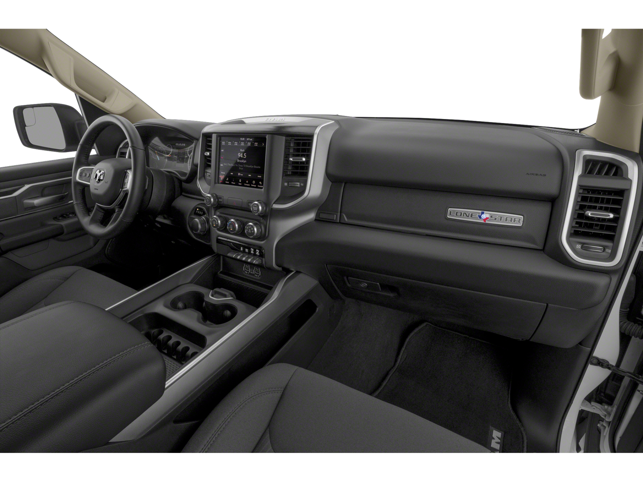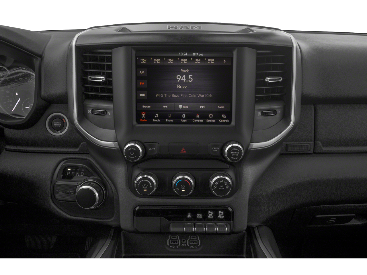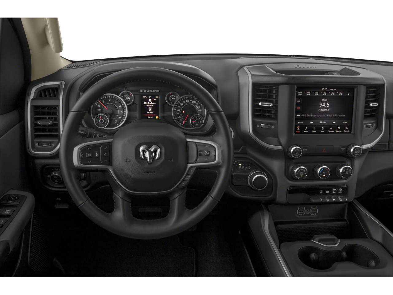 ** Alloy Wheels / Premium Wheels, ** Apple CarPlay/Android Auto, ** Bluetooth®, Hands Free, ** Premium Sound System / Premium Audio, ** Stability Control, ** USB Port, 3 Rear Seat Head Restraints, 3.21 Rear Axle Ratio, 4 Way Front Headrests, 4-Wheel Disc Brakes, 40/20/40 Split Bench Seat, 48V Belt Starter Generator, 6 Speakers, ABS brakes, Air Conditioning, Alloy wheels, AM/FM radio, Anti-Spin Differential Rear Axle, Auto-Dimming Exterior Driver Mirror, Auto-Dimming Rear-View Mirror, Big Horn Badge, Big Horn Level 1 Equipment Group, Black Exterior Mirrors, Black Premium Power Mirrors, Brake assist, Bumpers: chrome, Class IV Receiver Hitch, Cloth Bench Seat, Cluster 3.5 TFT Color Display, Compass, Delay-off headlights, Driver door bin, Dual front impact airbags, Dual front side impact airbags, Electronic Stability Control, Exterior Mirrors Courtesy Lamps, Exterior Mirrors w/Supplemental Signals, Foam Bottle Insert (Door Trim Panel), For More Info, Call 800-643-2112, Front anti-roll bar, Front Center Armrest w/Storage, Front fog lights, Front License Plate Bracket, Front reading lights, Front Seat Back Map Pockets, Front wheel independent suspension, Fully automatic headlights, Glove Box Lamp, GPS Antenna Input, Heated door mirrors, Illuminated entry, Integrated Voice Command w/Bluetooth®, Leather steering wheel, Low tire pressure warning, Manual Adjust 4-Way Front Passenger Seat, Manufacturer's Statement of Origin, Occupant sensing airbag, Outside temperature display, Overhead airbag, Overhead console, Panic alarm, ParkView Rear Back-Up Camera, Passenger door bin, Passenger vanity mirror, Power 4-Way Driver Lumbar Adjust, Power 8-Way Driver Seat, Power Adjustable Pedals, Power door mirrors, Power steering, Power windows, Power-Folding Mirrors, Quick Order Package 25Z Big Horn, Radio data system, Radio: Uconnect 3 w/5 Display, Radio: Uconnect 4 w/8.4 Display, Rear 60/40 Folding Seat, Rear anti-roll bar, Rear Dome w/On/Off Switch Lamp, Rear Power Sliding Window, Rear seat center armrest, Rear step bumper, Rear Window Defroster, Remote keyless entry, SiriusXM Radio Service, SiriusXM Satellite Radio, Speed control, Split folding rear seat, Steering wheel mounted audio controls, Sun Visors w/Illuminated Vanity Mirrors, Tachometer, Telescoping steering wheel, Tilt steering wheel, Traction control, Trip computer, Universal Garage Door Opener, Variably intermittent wipers, Voltmeter, Wheels: 18 x 8 Cast-Aluminum Painted, Wheels: 20 x 9 Aluminum Chrome Clad (WRK).