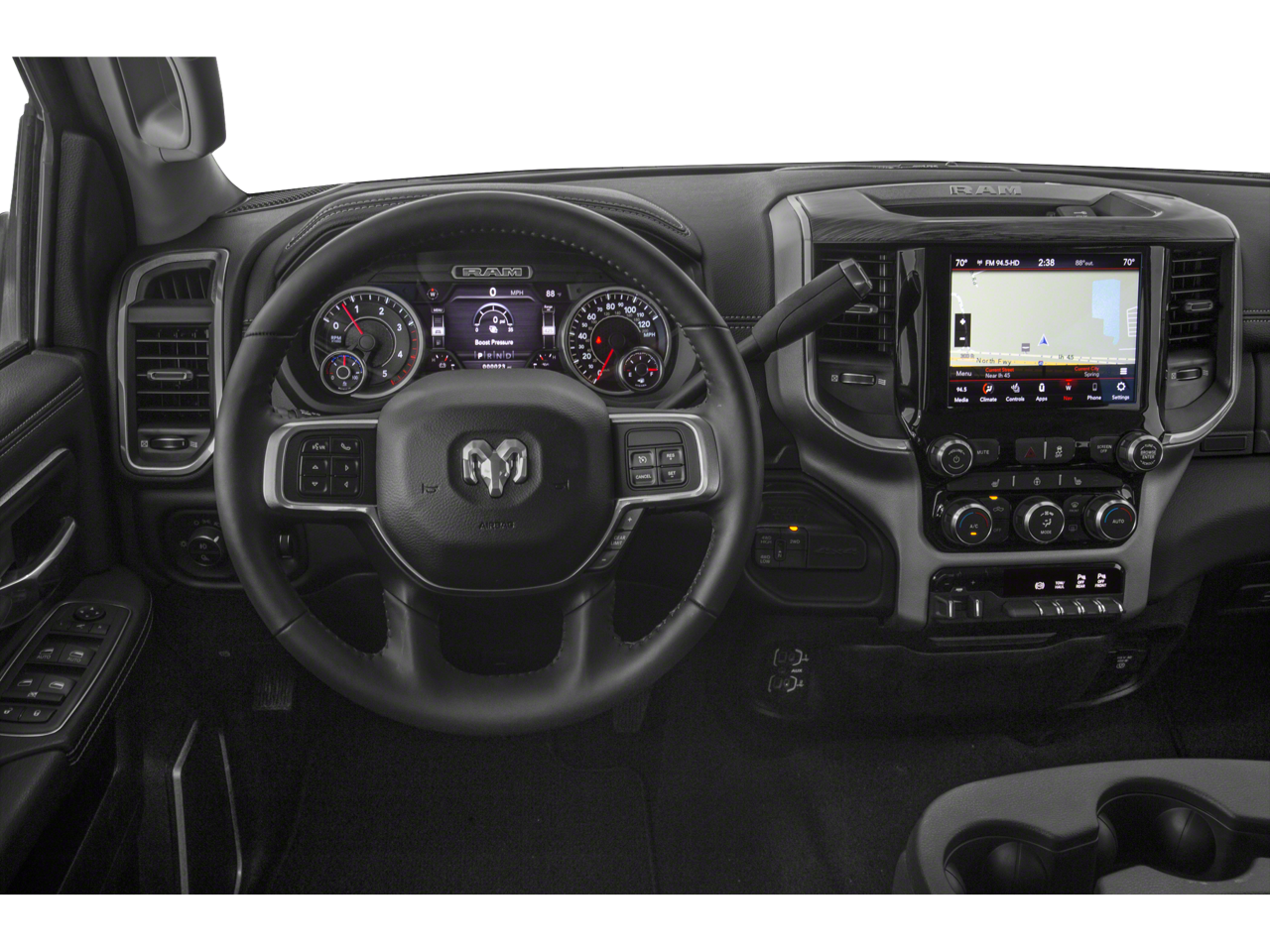 ** Alloy Wheels / Premium Wheels, ** Apple CarPlay/Android Auto, ** Bluetooth®, Hands Free, ** Premium Sound System / Premium Audio, ** Stability Control, ** USB Port, 1 Year Telematics Service, 10 Speakers, 115V Auxiliary Rear Power Outlet, 2 Way Rear Headrest Seat, 220 Amp Alternator, 3.73 Axle Ratio, 4 Way Front Headrests, 4-Wheel Disc Brakes, 8.4 Touchscreen Display, ABS brakes, Active Noise Control System, Adjustable pedals, Air Conditioning, Alloy wheels, AM/FM radio: SiriusXM, Anti-Spin Differential Rear Axle, Apple CarPlay, Apple CarPlay/Android Auto, Auto-dimming Rear-View mirror, Automatic temperature control, Brake assist, Bumpers: chrome, Compass, Delay-off headlights, Driver door bin, Driver vanity mirror, Dual front impact airbags, Dual front side impact airbags, Electronic Stability Control, Electronically Controlled Throttle, Front anti-roll bar, Front Center Armrest w/Storage, Front dual zone A/C, Front fog lights, Front License Plate Bracket, Front reading lights, Front Seat Back Map Pockets, Fully automatic headlights, Garage door transmitter, Google Android Auto, GPS Antenna Input, Heated door mirrors, Heated Front Seats, Heated front seats, Heated Steering Wheel, Heated steering wheel, Illuminated entry, Integrated Center Stack Radio, Integrated Voice Command w/Bluetooth®, Leather steering wheel, Leather Trim 40/20/40 Bench Seat, Low tire pressure warning, Manufacturer's Statement of Origin, Occupant sensing airbag, Outside temperature display, Overhead airbag, Overhead console, Panic alarm, ParkView Rear Back-Up Camera, Passenger door bin, Passenger vanity mirror, Power 2-Way Driver Lumbar Adjust, Power 2-Way Passenger Lumbar Adjust, Power Adjust 8-Way Driver Seat, Power Adjust 8-Way Front Passenger Seat, Power door mirrors, Power driver seat, Power passenger seat, Power steering, Power windows, Quick Order Package 2HH Laramie, Radio data system, Radio: Uconnect 4 w/8.4 Display, RAM Telematics, Rear 60/40 Folding Seat, Rear anti-roll bar, Rear reading lights, Rear seat center armrest, Rear step bumper, Rear window defroster, Remote keyless entry, Security system, SiriusXM Satellite Radio, Speed control, Split folding rear seat, Steering wheel mounted audio controls, Tachometer, Tilt steering wheel, Tip Start, Tow Hooks, Traction control, Trip computer, Turn signal indicator mirrors, Variably intermittent wipers, Vendor Painted Cargo Box Tracking, Voltmeter, Wheels: 18 x 8.0 Polished Aluminum.