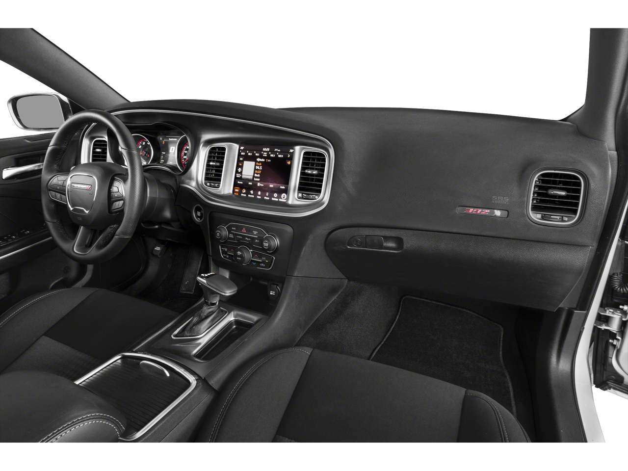 Black Cloth, 4-Wheel Disc Brakes, 6 Speakers, ABS brakes, Air Conditioning, Alloy wheels, AM/FM radio: SiriusXM, Anti-whiplash front head restraints, Apple CarPlay, Apple CarPlay/Android Auto, Auto-dimming Rear-View mirror, Automatic temperature control, Body Color Exterior Mirrors, Brake assist, Brake Calipers - Red, Bumpers: body-color, Cloth Performance Seats w/Heat, Compass, Delay-off headlights, Driver door bin, Driver vanity mirror, Dual front impact airbags, Dual front side impact airbags, Electronic Stability Control, Emergency communication system: SiriusXM Guardian, Four wheel independent suspension, Front anti-roll bar, Front Bucket Seats, Front Center Armrest, Front dual zone A/C, Front fog lights, Front reading lights, Fully automatic headlights, Garage door transmitter: HomeLink, Google Android Auto, GPS Antenna Input, Heated door mirrors, Heated Front Seats, Heated front seats, Heated steering wheel, Illuminated entry, Integrated Center Stack Radio, Integrated Voice Command w/Bluetooth®, Knee airbag, Leather Shift Knob, Low tire pressure warning, Media Hub (2 USB, AUX), Occupant sensing airbag, Outside temperature display, Overhead airbag, Overhead console, Panic alarm, ParkView Rear Back-Up Camera, Passenger door bin, Passenger vanity mirror, Power 2-Way Driver Lumbar Adjust, Power door mirrors, Power driver seat, Power steering, Power Sunroof, Power windows, Quick Order Package 21W Scat Pack, Radio: Uconnect 4C w/8.4 Display, Rear anti-roll bar, Rear reading lights, Rear seat center armrest, Rear window defroster, Remote keyless entry, Security system, Speed control, Speed-Sensitive Wipers, Split folding rear seat, Spoiler, Sport steering wheel, Steering wheel mounted audio controls, Tachometer, Telescoping steering wheel, Tilt steering wheel, Traction control, Trip computer, USB Host Flip, Variably intermittent wipers, Wheels: 20 x 9 Lo Gloss Granite Crystal, Black Cloth.