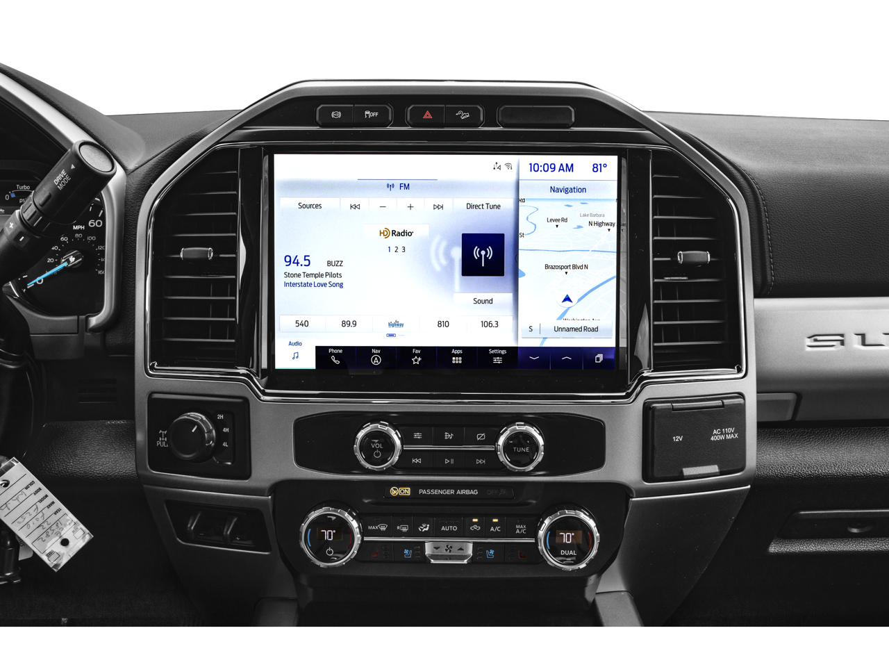 ** Alloy Wheels / Premium Wheels, ** Apple CarPlay/Android Auto, ** Bluetooth®, Hands Free, ** Premium Sound System / Premium Audio, ** Stability Control, ** USB Port, 4WD, 10 Speakers, 4-Wheel Disc Brakes, 5th Wheel/Gooseneck Hitch Prep Package, 6 Angular Bright Polished Step Bar, 6 Angular Bright Polished Step Bars, ABS brakes, Adjustable pedals, Air Conditioning, All-Weather Floor Mats, Alloy wheels, AM/FM radio: SiriusXM with 360L, Ambient Lighting - Fixed Color, Auto High-beam Headlights, Auto-dimming Rear-View mirror, Automatic temperature control, Body-Color Door Handles w/Chrome Insert, Brake assist, Bumpers: chrome, Chrome Exhaust Tip, Chrome Package, Compass, Delay-off headlights, Driver door bin, Driver vanity mirror, Dual front impact airbags, Dual front side impact airbags, Easy Entry®/Exit Memory Driver's Seat Feature, Electronic Stability Control, Emergency communication system: SYNC 4 911 Assist, Exterior Parking Camera Rear, Flow-Through Console, Front & Rear Wheel Well Liners (Pre-Installed), Front anti-roll bar, Front Bucket Seats, Front Center Armrest, Front dual zone A/C, Front fog lights, Front Leather Seating Surfaces 40/Console/40, Front reading lights, Fully automatic headlights, FX4 Off-Road Package, GVWR: 10,000 lb Payload Package, Heated door mirrors, Hill Descent Control, Illuminated entry, Intelligent Access w/Push-Button Start, Lane Departure Warning System, Lariat Ultimate Package, Leather steering wheel, LED Box Lighting, Low tire pressure warning, Memory Power-Adjustable Pedals, Navigation system: Connected Navigation, Off-Road Specifically Tuned Shock Absorbers, Order Code 608A, Outside temperature display, Overhead airbag, Overhead console, Panic alarm, Passenger door bin, Passenger vanity mirror, Power door mirrors, Power driver seat, Power Heated/Ventilated Driver Seat w/Memory, Power Heated/Ventilated Passenger Seat, Power passenger seat, Power steering, Power Telescoping/Tilt Steering Wheel/Column, Power windows, PowerScope Trailer Tow Mirrors w/Heat, PowerScope Trailer Tow Mirrors w/Memory, Pro Trailer Backup Assist, Radio data system, Radio: B&O Sound System by Bang & Olufsen, Rear Parking Sensors, Rear reading lights, Rear seat center armrest, Rear step bumper, Rear window defroster, Remote keyless entry, Remote Start System, Remote Tailgate Release, Security system, SiriusXM Radio w/360L, Speed control, Split folding rear seat, Steering wheel mounted audio controls, SYNC 4 w/Enhanced Voice Recognition, Tachometer, Tailgate Step & Handle, Telescoping steering wheel, Tilt steering wheel, Traction control, Trip computer, Turn signal indicator mirrors, Twin Panel Power Moonroof, Ultimate Trailer Tow Camera System, Unique Chrome Mirror Caps, Unique FX4 Off-Road Box Decal, Universal Garage Door Opener (UGDO), Upfitter Switches (6), Variably intermittent wipers, Wheels: 18 Bright Machined Cast Aluminum, Wheels: 18 Chrome PVD Aluminum, Wheels: 20 Chrome PVD Aluminum, 4WD.
