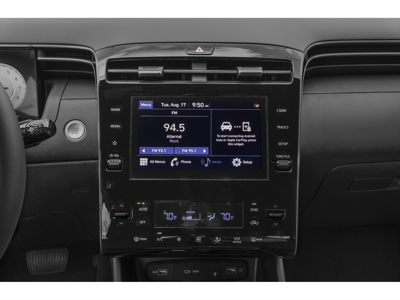 • Radio: AM/FM Audio System -inc: low-cost display audio, 8" color touchscreen, 6 speakers, SiriusXM satellite radio w/3-month trial subscription, HD Radio, Blue Link connected car system, Bluetooth, wireless Apple CarPlay and Android Auto and dual front high-power USB outlets