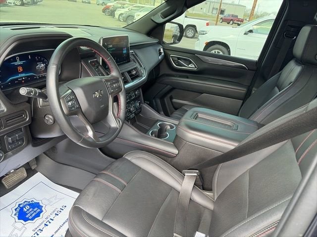** Alloy Wheels / Premium Wheels, ** Bluetooth®, Hands Free, ** Cruise Control, ** Keyless Entry, ** Premium Sound System / Premium Audio, ** Satellite Radio, ** Steering Wheel Controls, 10-Way Power Driver & Passenger Seat Adjusters, 1st & 2nd Row Color-Keyed Carpeted Floor Mats, 1st, 2nd & 3rd Row All-Weather Floor Liners (LPO), 2-Speed Active Electronic AutoTrac Transfer Case, 2nd Row Pwr Release 60/40 Split-Folding Bench Seat, 3.23 Rear Axle Ratio, 3rd Row 60/40 Power-Folding Split-Bench, 3rd row seats: split-bench, 4-Wheel Disc Brakes, 9 Speakers, ABS brakes, Adaptive Cruise Control, Advanced Trailering Package, Air Conditioning, All-Weather Cargo Mat (LPO), Alloy wheels, AM/FM radio: SiriusXM with 360L, Apple CarPlay/Android Auto, Auto High-beam Headlights, Auto-Dimming Inside Rear-View Mirror, Auto-dimming Rear-View mirror, Automatic temperature control, Bose 9-Speaker Stereo Audio System Feature, Brake assist, Bright Front & Rear Door Sill Plates, Bumpers: body-color, Color-Keyed Carpeting Floor Covering, Compass, Delay-off headlights, Driver & Front Outboard Passenger Airbags, Driver Alert Package, Driver door bin, Driver vanity mirror, Dual front impact airbags, Dual front side impact airbags, Dual-Pane Power Panoramic Sunroof, Electronic Stability Control, Emergency communication system: OnStar and Chevrolet connected services capable, Enhanced Automatic Emergency Braking, Enhanced Driver Information Center, Extra Capacity Cooling System, Floor Console w/Storage Area, Four wheel independent suspension, Front anti-roll bar, Front Bucket Seats, Front Center Armrest, Front dual zone A/C, Front reading lights, Fully automatic headlights, Garage door transmitter, Hands-Free Rear Power Programmable Liftgate, HD Surround Vision, Heated 2nd Row Outboard Seats, Heated door mirrors, Heated Driver & Front Passenger Seats, Heated front seats, Heated Steering Wheel, Hitch Guidance w/Hitch View, Illuminated entry, Infotainment Display, Integrated Trailer Brake Controller, Lane Change Alert w/Side Blind Zone Alert, LED Daytime Running Lamps, License Plate Front Mounting Package, Low tire pressure warning, Luxury Package, Max Trailering Package, Memory seat, Memory Settings, Memory Settings For Driver, Navigation System, Not Equipped w/Wheel Locks (LPO), Occupant sensing airbag, Outside Heated Power-Adjustable Mirrors, Outside temperature display, Overhead airbag, Overhead console, Panic alarm, Passenger door bin, Passenger vanity mirror, Perforated Leather Seating Surfaces, Power door mirrors, Power driver seat, Power Liftgate, Power passenger seat, Power Release 2nd Row Bucket Seats, Power steering, Power Tilt & Telescopic Steering Column, Power windows, Preferred Equipment Group 1SP, Premium audio system: Chevrolet Infotainment 3 Premium, Premium Smooth Ride Suspension, Radio: Chevrolet Infotainment 3 Premium System, Rain sensing wipers, Rear air conditioning, Rear anti-roll bar, Rear Cross Traffic Alert, Rear Pedestrian Alert, Rear reading lights, Rear seat center armrest, Rear window defroster, Rear window wiper, Remote keyless entry, Remote Start, Roof rack: rails only, Security system, SiriusXM Radio w/360L, Smart Trailer Integration Indicator, Speed control, Speed-sensing steering, Split folding rear seat, Spoiler, Steering wheel mounted audio controls, Tachometer, Telescoping steering wheel, Tilt steering wheel, Traction control, Trip computer, Universal Home Remote, Variably intermittent wipers, Voltmeter, Wheel Locks (Set of 4) (LPO), Wheels: 22 x 9 Bright Machined, Wireless Charging, Wrapped Steering Wheel.