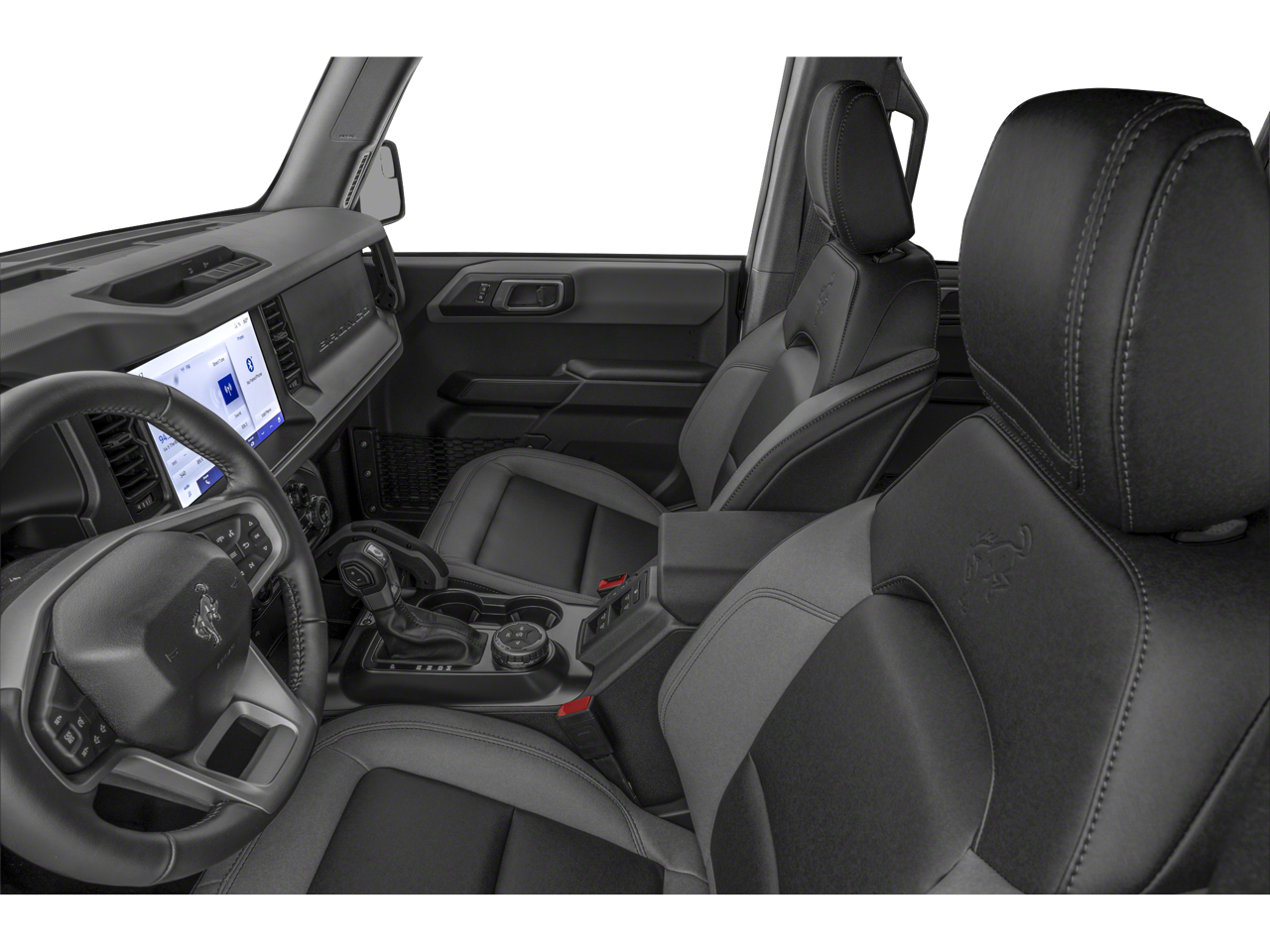 2-Door Intelligent Access w/Lock/Unlock, 4-Wheel Disc Brakes, 4.46 Axle Ratio, 7 Speakers, ABS brakes, Air Conditioning, Alloy wheels, AM/FM radio: SiriusXM with 360L, AM/FM Stereo, Ambient Footwell Lighting, Auto High-Beam Headlamps, Auto High-beam Headlights, Auto-Dimming Interior Rear-View Mirror, BLIS Blind Spot Information System, Brake assist, Compass, Connected Navigation, Delay-off headlights, Dr & Pass Illuminated Sliding Visor Vanity Mirrors, Driver door bin, Driver vanity mirror, Dual front impact airbags, Dual front side impact airbags, Dual Smart Charging USB Ports, Dual-Zone Electronic Automatic Temperature Control, Electronic Stability Control, Emergency communication system: 911 Assist, Equipment Group 222A Mid Package, Exterior Parking Camera Rear, Front anti-roll bar, Front Bucket Seats, Front Center Armrest, Front fog lights, Front reading lights, Front Row Heated Seats, Front wheel independent suspension, Fully automatic headlights, Heated door mirrors, Illuminated entry, Integrated roll-over protection, Lane-Keeping System, Leather Shift Knob, Low tire pressure warning, Marine Grade Vinyl Bucket Seats, Occupant sensing airbag, Outside temperature display, Overhead airbag, Overhead console, Panic alarm, Passenger door bin, Passenger vanity mirror, Power door mirrors, Power Outlet - Back Side of Center Floor Console, Power steering, Power windows, Pre-Collision Assist w/Automatic Emergency Braking, Radio data system, Rear Parking Sensors, Rear-View Camera, Remote keyless entry, Security system, SiriusXM Radio w/360L, Speed control, Split folding rear seat, Steering wheel mounted audio controls, SYNC 4, Tachometer, Telescoping steering wheel, Tilt steering wheel, Traction control, Trip computer, Variably intermittent wipers, Wheels: 17 Carbonized Gray-Painted Aluminum.