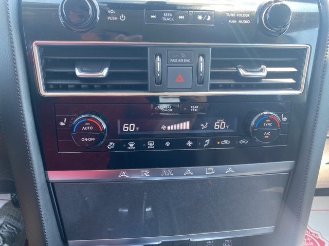 ** Alloy Wheels / Premium Wheels, ** Bluetooth®, Hands Free, ** Cruise Control, ** Keyless Entry, ** Premium Sound System / Premium Audio, ** Satellite Radio, ** Steering Wheel Controls, 4WD, 18 x 8J Alloy Wheels, 2.937 Axle Ratio, 3rd row seats: split-bench, 4-Wheel Disc Brakes, 6 Speakers, ABS brakes, Air Conditioning, Alloy wheels, AM/FM radio: SiriusXM, Anti-whiplash front head restraints, Auto High-beam Headlights, Auto tilt-away steering wheel, Auto-dimming Rear-View mirror, Auto-leveling suspension, Automatic temperature control, Brake assist, Bumpers: body-color, Delay-off headlights, Driver door bin, Driver vanity mirror, Dual front impact airbags, Dual front side impact airbags, Electronic Stability Control, Emergency communication system: NissanConnect Services, Exterior Parking Camera Rear, Four wheel independent suspension, Front anti-roll bar, Front Bucket Seats, Front Center Armrest, Front dual zone A/C, Front fog lights, Front reading lights, Fully automatic headlights, Garage door transmitter: HomeLink, Heated door mirrors, Heated Front Bucket Seats, Heated front seats, Illuminated entry, Knee airbag, Leather Shift Knob, Leather steering wheel, Leatherette Seat Trim, Low tire pressure warning, Navigation System, Occupant sensing airbag, Outside temperature display, Overhead airbag, Overhead console, Panic alarm, Passenger door bin, Passenger vanity mirror, Power door mirrors, Power driver seat, Power passenger seat, Power steering, Power windows, Radio: NissanConnect w/SiriusXM, Rear air conditioning, Rear anti-roll bar, Rear reading lights, Rear seat center armrest, Rear window defroster, Rear window wiper, Reclining 3rd row seat, Remote keyless entry, Security system, Speed control, Speed-sensing steering, Speed-Sensitive Wipers, Split folding rear seat, Spoiler, Steering wheel mounted audio controls, Tachometer, Telescoping steering wheel, Tilt steering wheel, Traction control, Trip computer, Turn signal indicator mirrors, Variably intermittent wipers, Voltmeter, 4WD. Recent Arrival! Aspen White Tricoat 2024 Clean CARFAX. Nissan Armada 4D Sport Utility SV 5.6L V8 DOHC 32V LEV3-ULEV125 400hp 7-Speed Automatic 4WD